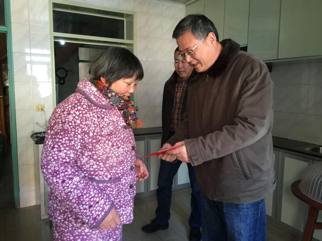 学期末,学校党委书记陈松华、校长王捷等学校领导班子成员分别对帮扶结对的普陀区展茅街道11户困难家庭进行了走访慰问,详细交谈了解他们的生活、身体及家庭情况,并送去了慰问金及慰问品,为贫困户提前送上新春祝福和暖心关爱。(校办)