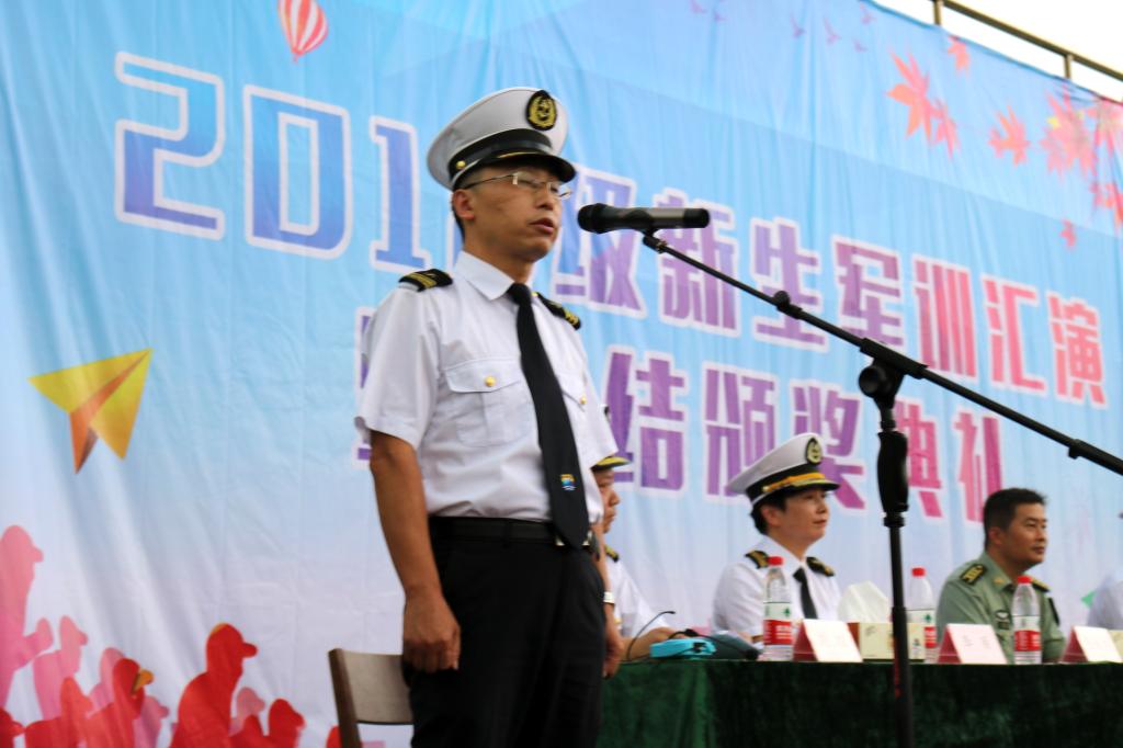 沈忠义上校对本次军训工作进行了认真的总结,对军训汇演进行了点评,他充分肯定了同学们在军训过程中所表现出来的不怕吃苦、团结协作、奋勇拼搏的精神,勉励同学们继续努力迎接挑战、超越自我。