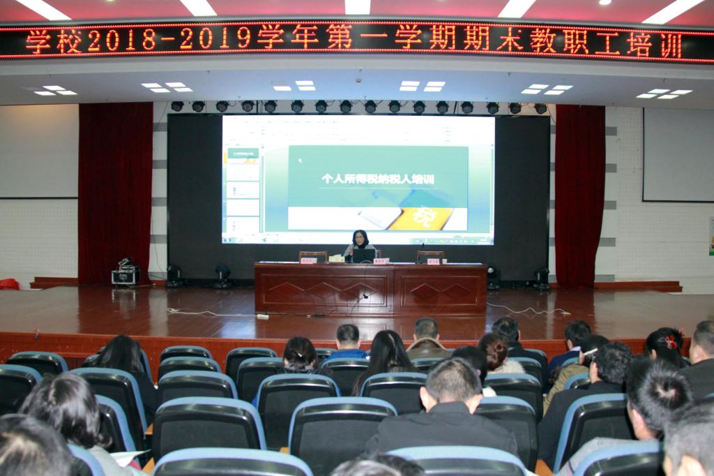 1月21-22日,学校组织开展2018-2019学年第一学期教职工集中培训,就师德修养、个税抵扣、科研考核等方面开设了系列讲座。