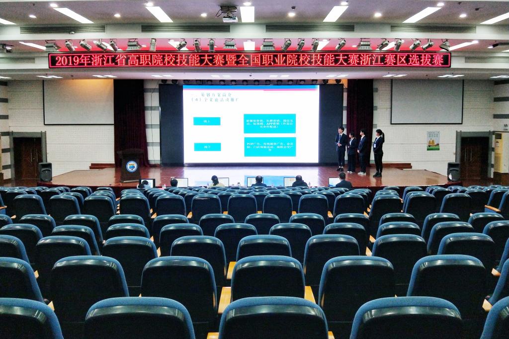 3月29日下午,为期两天的2019年浙江省高职院校技能大赛暨全国职业院校技能大赛浙江赛区选拔赛“市场营销技能”竞赛在我校圆满落幕。我校代表队由港口管理学院胡威、范展鸿、贺丽雯、骆佳成四位同学,何伟、杨碧瑛两位指导老师组成,他们与省内其他兄弟院校代表队同场竞技,展开了一番激烈角逐,获得了优异成绩。