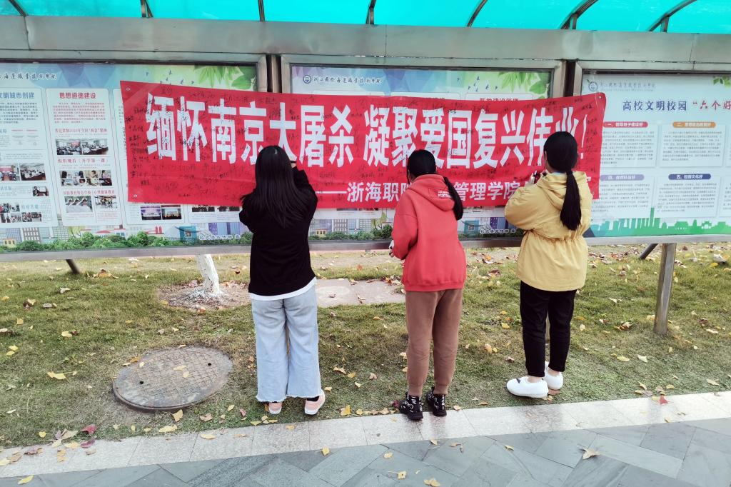 观看纪录片、参与知识竞赛、在公益横幅上签字、举行升旗和降半旗仪式……2020年12月13日,是第七个南京大屠杀死难者国家公祭日,学校组织开展了多项主题教育活动,铭记历史、勿忘国耻、祈愿和平。