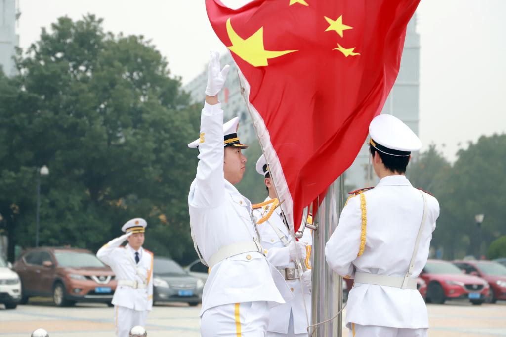 航海工程学院国旗护卫队举行升旗和降半旗仪式