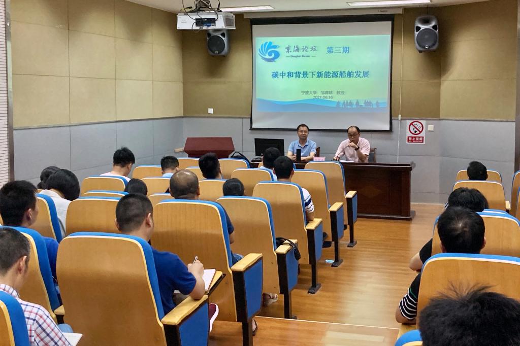 6月16日下午,学校“东海论坛”举行第三期学术讲座,邀请了宁波大学教授、博士生导师、邹得球博士作“碳中和背景下新能源船舶发展”专题讲座。科研处处长郭飞军教授主持会议,来自学校科研处、航海工程学院、船舶工程学院、国际教育学院、港口管理学院等科研团队负责人及教师50余人聆听了报告。