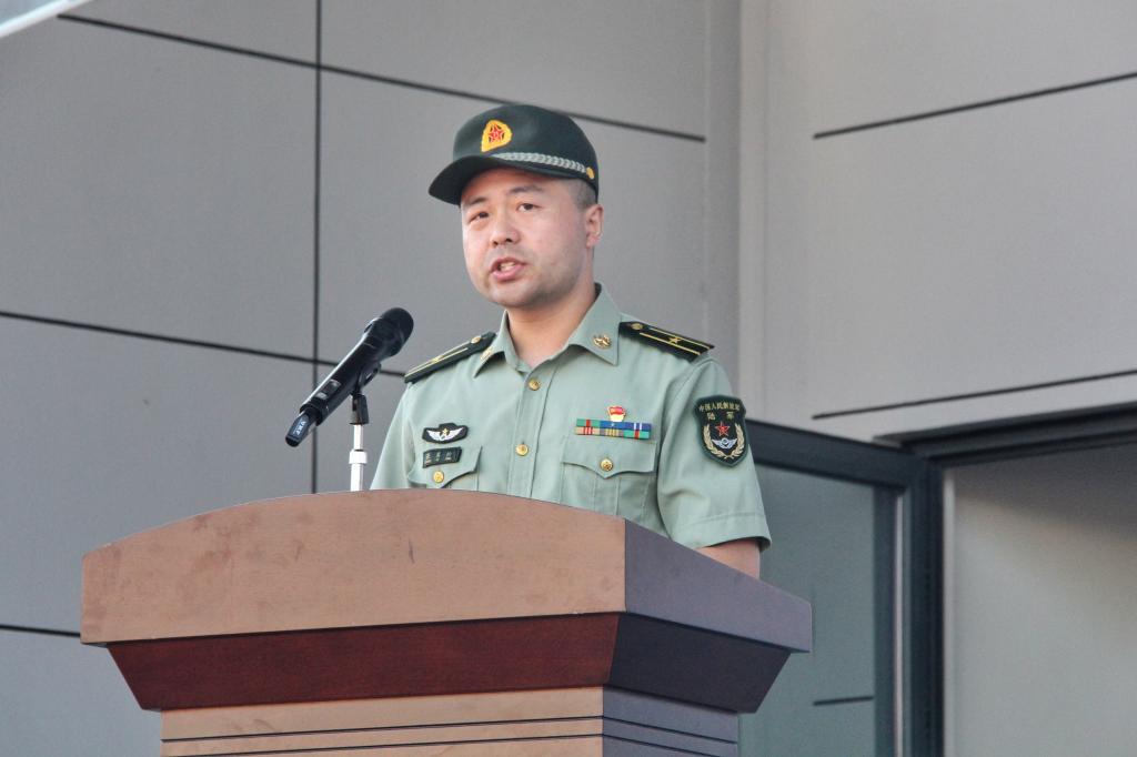 张其松副教导员代表承训部队发言。他说,在接下来的军训中,承训官兵会全心全意地带领全体新生,为同学们今后有更为强健的体魄、更顽强的意志、更坚定的信念,承受“个人所希、祖国所需”的人生加以助力。他对同学们提出了三个“期待”:坚持、珍惜和走在前列。同学们既是追梦人,也是圆梦人,要未雨绸缪、打好基础、做好准备,这次军训就是最好的开始。
