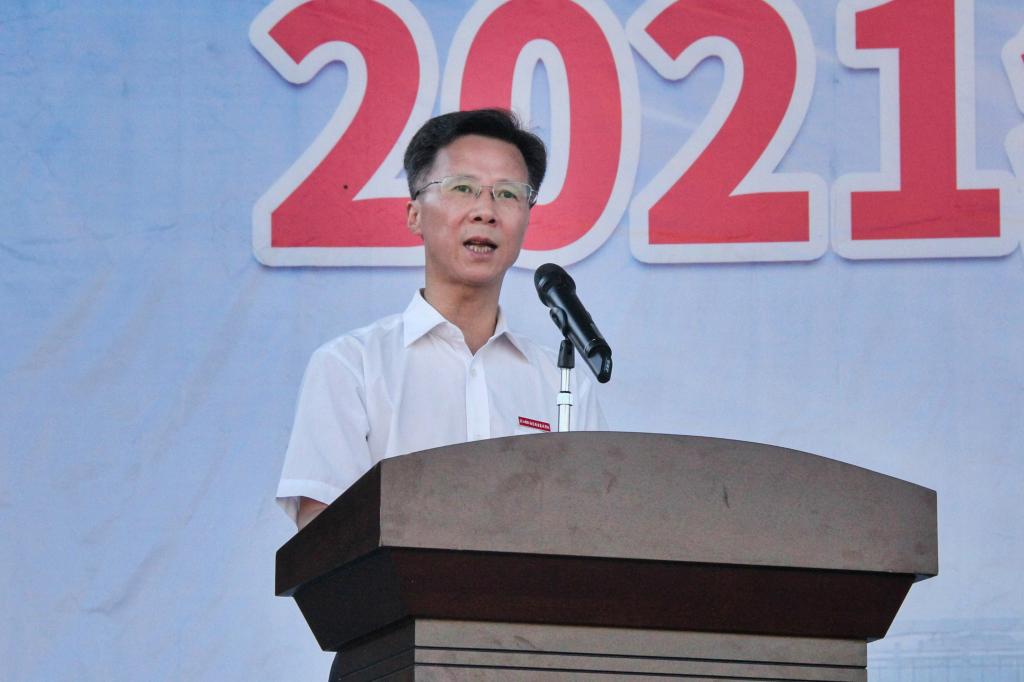 9月17日下午,学校2021级新生开学典礼暨军训动员大会在田径场举行。校党委副书记、校长吴中平,承训部队陆军海防第302旅副教导员张其松,校领导李丽、刘相、曹志斌、夏志刚、黄承出席大会并在主席台就坐。