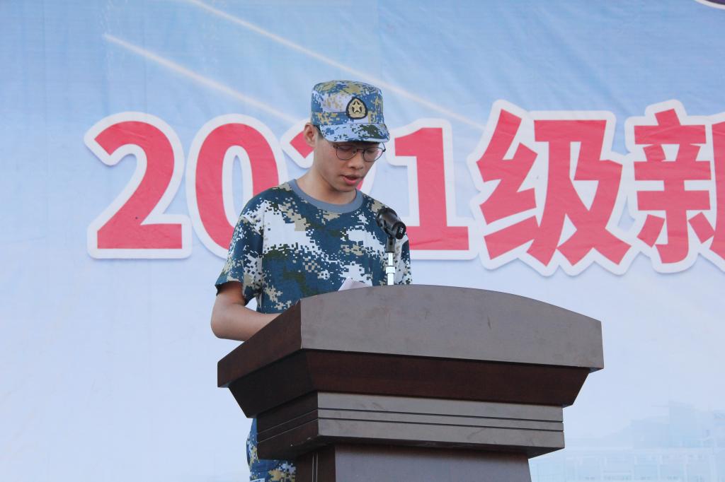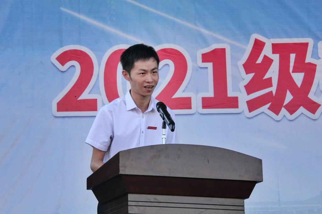 港口管理学院2021级跨境电商班的朱星宇同学代表全体新生发言。他说,站在在人生新的驿站、新的起点,同学们怀揣着未来的梦想,承载着亲人的希望,一起播下希望的种子,向着未来的方向扬帆起航。他代表2021级新生向老师和家长们保证:不论骄阳和风雨,我们都坚持锻炼,不论艰难和困苦,我们都勇往直前,请学校放心,强国有我!