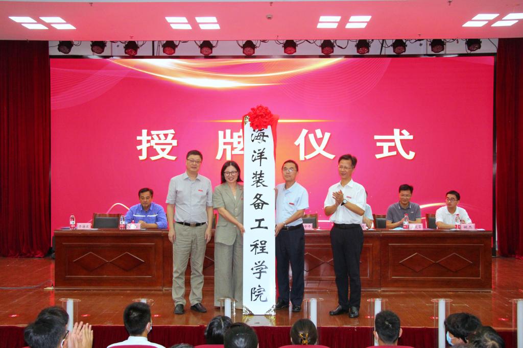 校党委书记苏为泽、校长吴中平向海洋装备工程学院授牌。