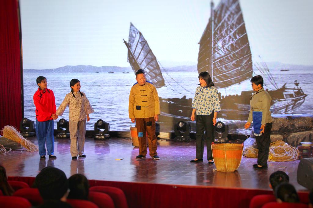 机关党总支和校妇联共同呈现的《蚂蚁岛的草绳船》、航海工程学院党总支的《外婆的渔网》、马克思主义学院党支部的《东海有座蚂蚁岛》,以不同的表演形式、不同的视角,共同讲述了蚂蚁岛人民发扬“艰苦创业、敢啃骨头、勇争一流”的蚂蚁岛精神,把一穷二白的蚂蚁岛建设成为全国闻名渔区先进典型的事迹。