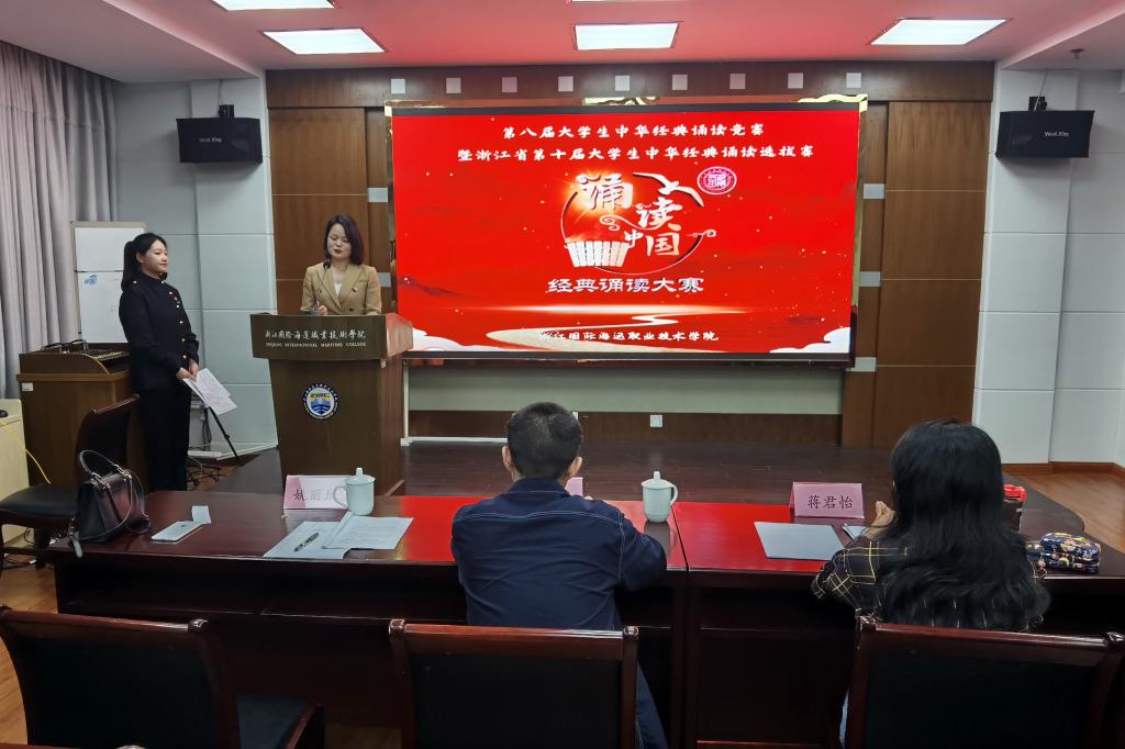 诵读古今经典,书写时代华章。为喜迎党的二十大,弘扬中华优秀传统文化,歌颂党的百年光辉历程,守望初心,提高大学生的语言文学素养,学校第八届中华经典诵读大赛(个人赛)于5月17日晚在行政楼401会议室顺利举行。学校邀请了国家级普通话测试员姚丽凤、蒋君怡、荣海涛担任评委老师,共有来自学校6个二级学院的24名选手参加竞赛。