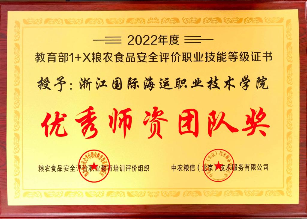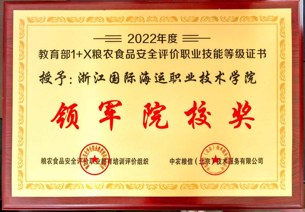 近日,海洋旅游学院食品专业团队荣获粮农食品安全评价职业教育培训评价组织授予的“领军院校奖”、“优秀师资团队奖”、“优秀组织奖”荣誉称号,以表彰在2022年度1+X试点推进工作中所作出的突出贡献。