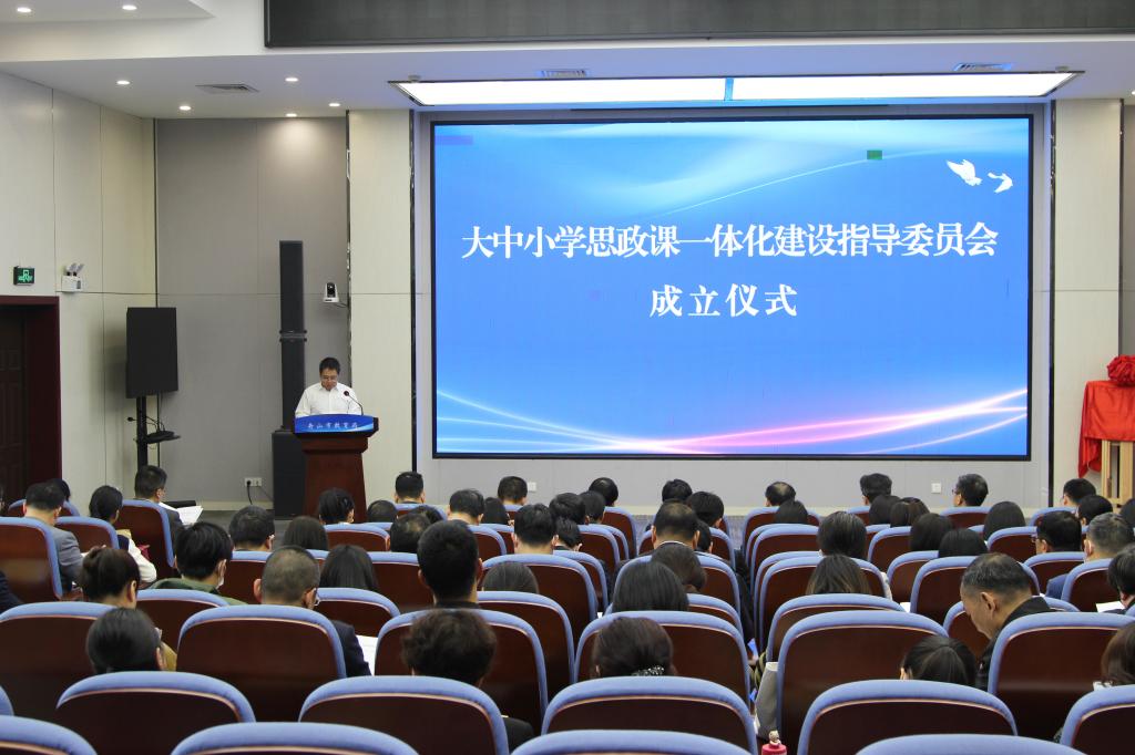 4月26日,在舟山市大中小学思政课一体化建设指导委员会揭牌仪式上, 全市43所大中小学负责人、首批16名思政智库专家和思政教师代表,齐聚一堂,共同重温习近平总书记在中国人民大学考察调研时的讲话精神,共同解读《舟山市大中小学思政课一体化建设行动方案》,落实“大手拉小手”大中小学思政课一体化方案,推出“大岛帮小岛”校地合作协议书,着力打造思政课一体化的海岛样本。