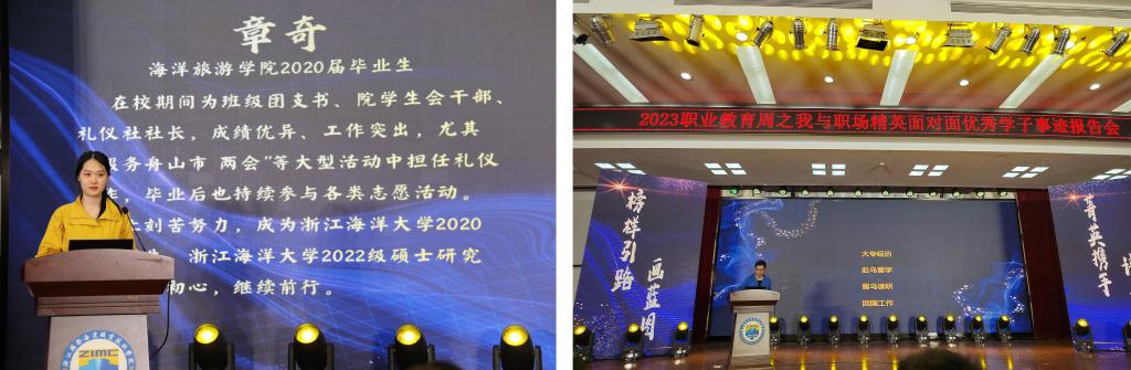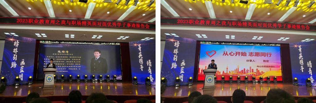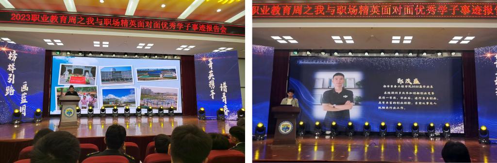5月17日,由校党委学工部主办的“榜样引路画蓝图 菁英携手谱青春”2023职业教育周之我与职场精英面对面暨优秀学子事迹报告会在图书馆报告厅成功举办。校领导苏为泽、吴中平、孔志光,办公室、学工部负责人及各二级学院的书记、副书记参加了此次报告会。