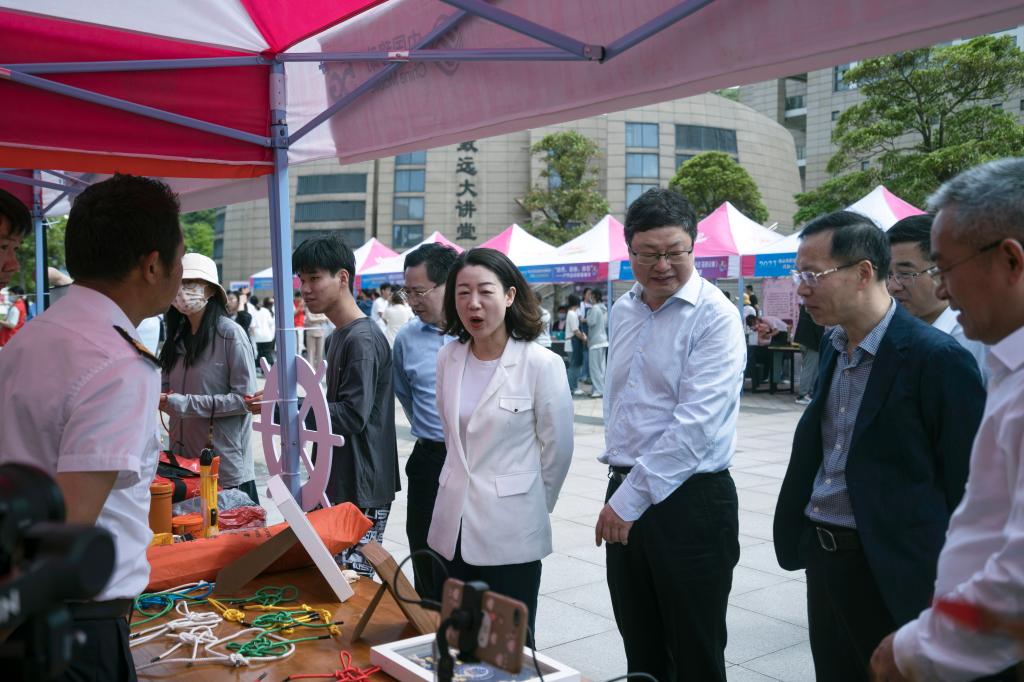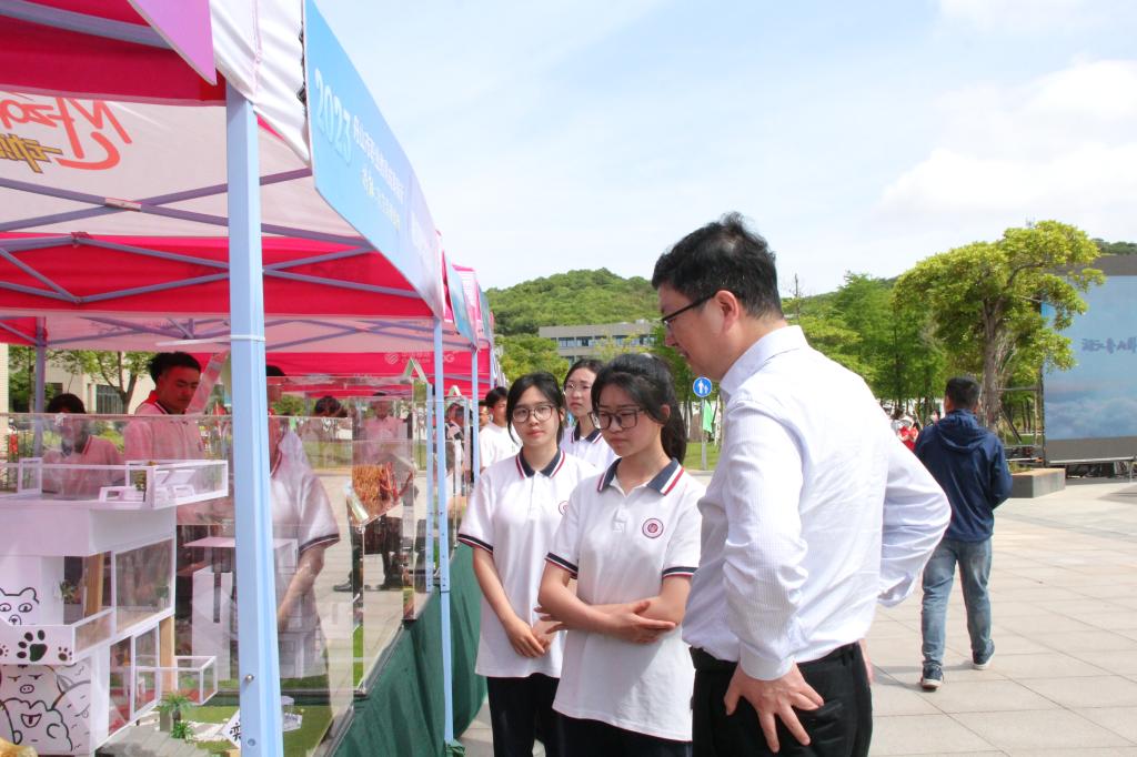 当天,苏为泽书记一行还参观了职业教育成果展示。各校师生展示了插花、香文化、茶文化、船模、渔绳结、蓝染等中国传统文化展示和超导磁悬浮、无人机操控、微缩建筑模型展示、电商直播等现代科技技术展示,充分展现了职业技术的魅力。(办公室、宣传部)