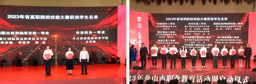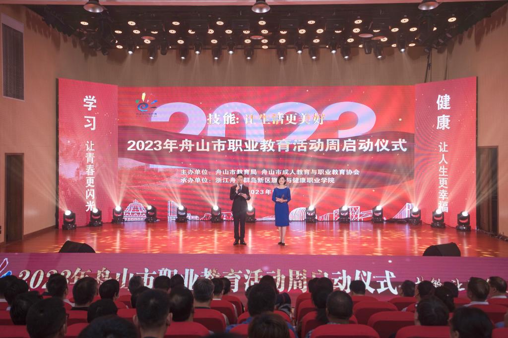 技能,让生活更美好。5月16日上午,2023年舟山市职业教育活动周启动仪式在舟山旅游健康职业学院举行。副市长洪碧出席仪式并致辞,市政府副秘书长厉仁军,市教育局党委书记、局长陈海波,市教育局总督学邵伟康,校党委书记苏为泽等领导参加仪式。