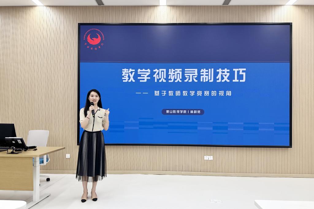 紧接着开始成长工作坊集中研修,王志军教授从引发思考的一些教学“迷思”、关于教学设计的思考及建议两方面对教学及教学设计进行了深入的解读;林蔚然老师以《教学视频录制技巧——基于教师教学竞赛的视角》为题,对教师教学竞赛视频拍摄中的注意事项进行全面细致的讲解;李晓蕾教授以《基于名师在线课程的混合式教学设计与实践—以<面向对象程序设计>为例》为题,通过对《面向对象程序设计》这一门课程及《类和对象》这一次教学示例进行剖析,得出三点结论:一是教学资源(视频)要吸引学生;二是教学法+空间+技术无缝融合;三是课堂不流于形式。