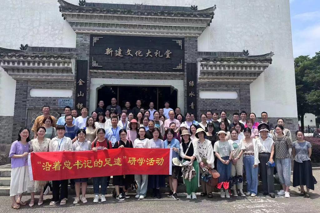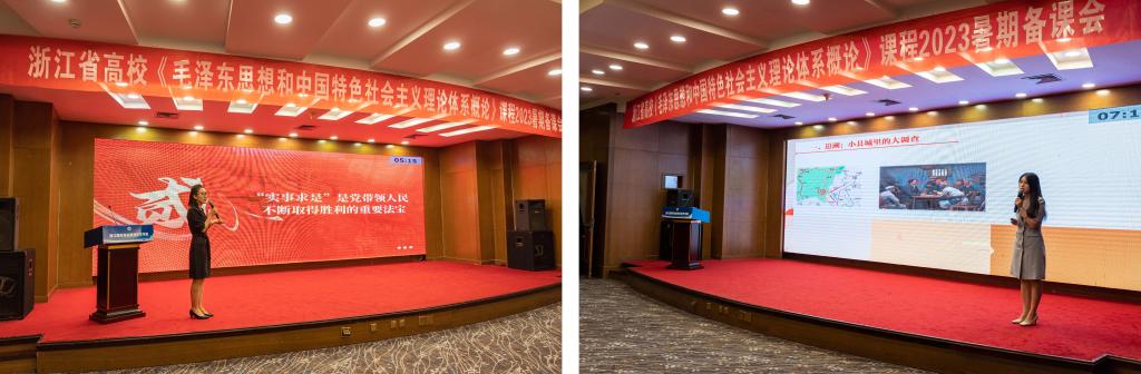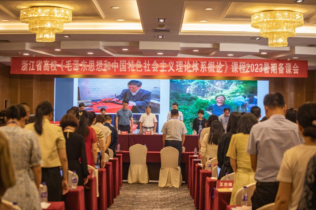 为学习贯彻党的二十大精神,加强思想政治理论课建设,展示教学改革与建设成效,推动提升教师的教学能力,7月7日至9日,由浙江省高校《毛泽东思想和中国特色社会主义理论体系概论》(以下简称《概论》)课程教学研究会、教育部全国高校思政课“手拉手”集体备课中心(浙江大学-浙江省)主办,我校协办的浙江省高校《概论》课2023暑期备课会在舟山召开。与会者“沿着总书记的足迹”,通过“红色根脉指导员”的精彩讲解和图文、实物、沉浸式剧场等形式,集体参观学习了全国生态文明村新建村和全国爱国主义教育基地舟山鸦片战争纪念馆等海岛上的红色文化资源,为《概论》课堂教学提供了鲜活的一线素材和情感体验。