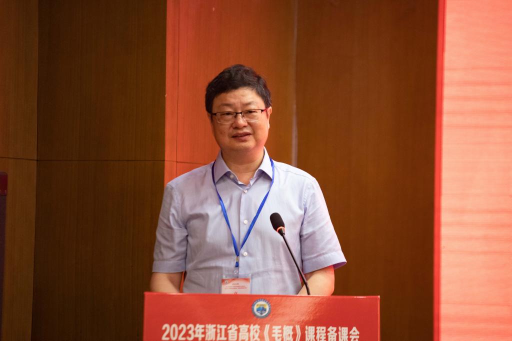 会议由浙江省高校《概论》课程教学研究会会长、浙江理工大学红色文化研究院院长渠长根教授主持。校党委书记苏为泽、舟山市委宣传部副部长钟传宏出席开幕式。来自省内78所高校的一百多位专家、学者、教师代表参会学习、交流、研讨。