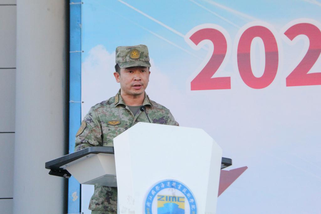 承训部队首长陈明在讲话中阐述了军训的重要性和意义,也对同学们接下来14天的军训提出了明确的要求,他希望同学们以饱满的精神,昂扬的斗志参加训练,用实际行动来证明“强国有我”的决心和勇气。