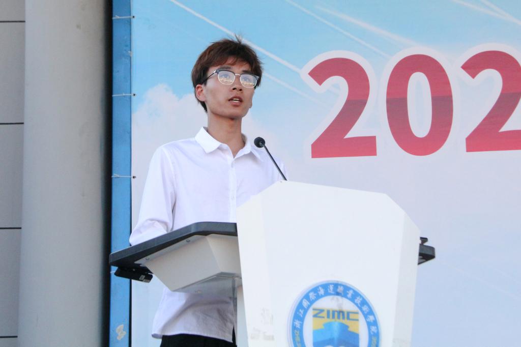 现代港口贸易学院2022级大数据技术2班的胡昊喆代表老生发言,他和所有新同学分享了自己在校期间积累的学习心得和经验,并希望学弟学妹们能够珍惜大学时光,积极提高文化知识水平、综合素质,不负韶华,做精彩的海运人。