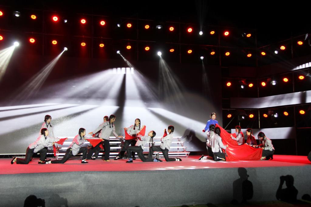汇演在舞狮表演中拉开帷幕。学校艺术团、石油化工学院和岱山县职业技术学校师生代表的精彩节目轮番上演,迅速点燃了全场观众的热情。舞台剧《红岩魂》用崭新的视角演绎红色经典,展现了江姐与革命战友大义凛然走向刑场的故事,致敬为信仰而牺牲的年轻人;歌伴舞《灯火里的中国》温情演绎了灯火里的美好生活,寄托着新时代的青年们对祖国的美好祝福和对未来的向往;师生歌曲串烧《夜空中最亮的星》《都选C》《我的未来式》《念亲恩》为现场增添了无限活力,观众们随着熟悉的旋律热情挥手,享受这场视听盛宴。