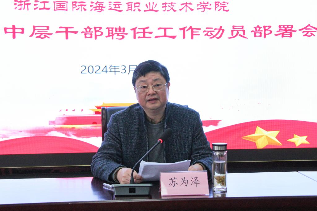 3月15日下午,学校第七轮中层干部聘任工作动员部署会在行政楼401会议室召开。校党委书记苏为泽出席会议并讲话。