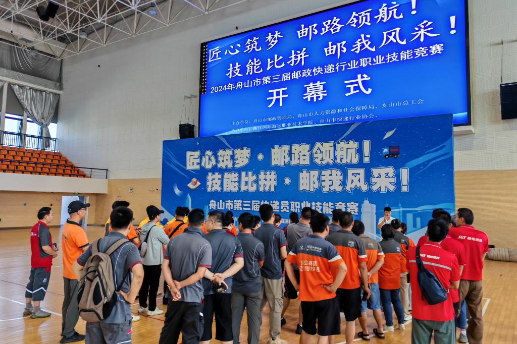 7月7日,由舟山市邮政管理局、舟山市人力资源和社会保障局、舟山市总工会联合主办,我校和舟山市快递行业协会等承办的舟山市第三届邮政快递员行业职业技能竞赛顺利举行。党委委员、副校长夏志刚,市邮政管理局副局长樊涛、市人力资源和社会保障局职业能力建设处副处长郑剑杰、市总工会经济保护部副部长吕浏炯、舟山市快递行业协会秘书长张方龙等领导出席了开闭幕式。我校现代港口贸易学院相关领导和专业教师承担了协调组织工作和竞赛裁判工作。