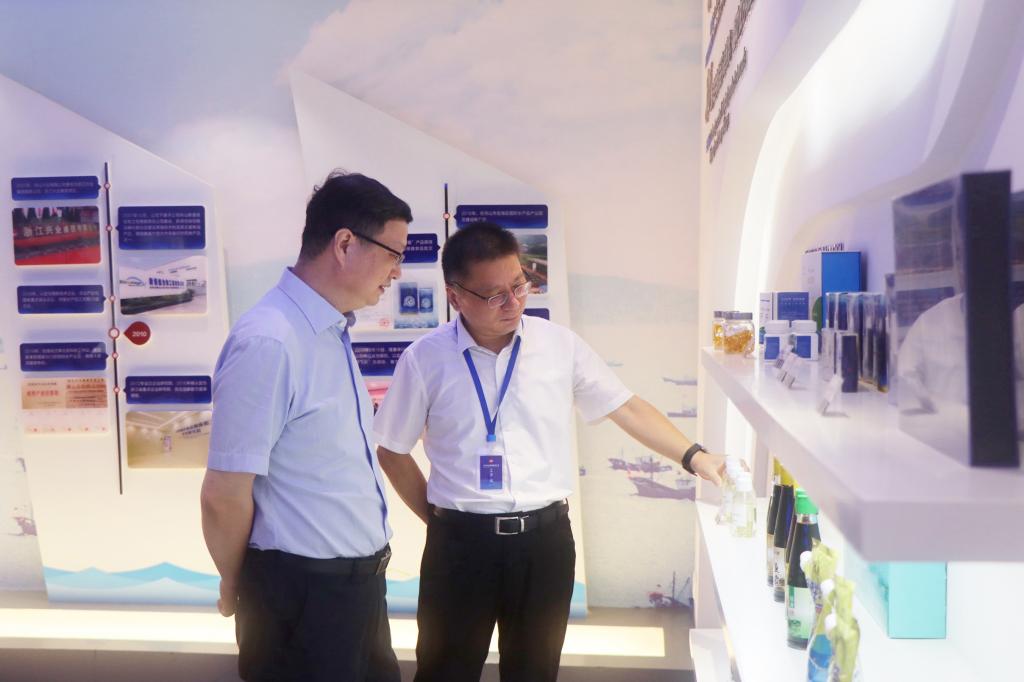 9月11日,在浙江兴业集团有限公司,苏为泽书记一行参观了品控室、研发室、展厅等,并与兴业公司董事长吴红卫进行了座谈交流。吴红卫董事长是学校的杰出校友,他指出,公司经营的水产品加工、海洋生物、远洋捕捞、贸易等板块以及公司的智能化生产线急需专业对口的技术技能人才,希望与学校加深合作,通过订单班等多种形式培养和吸引学生来企就业。