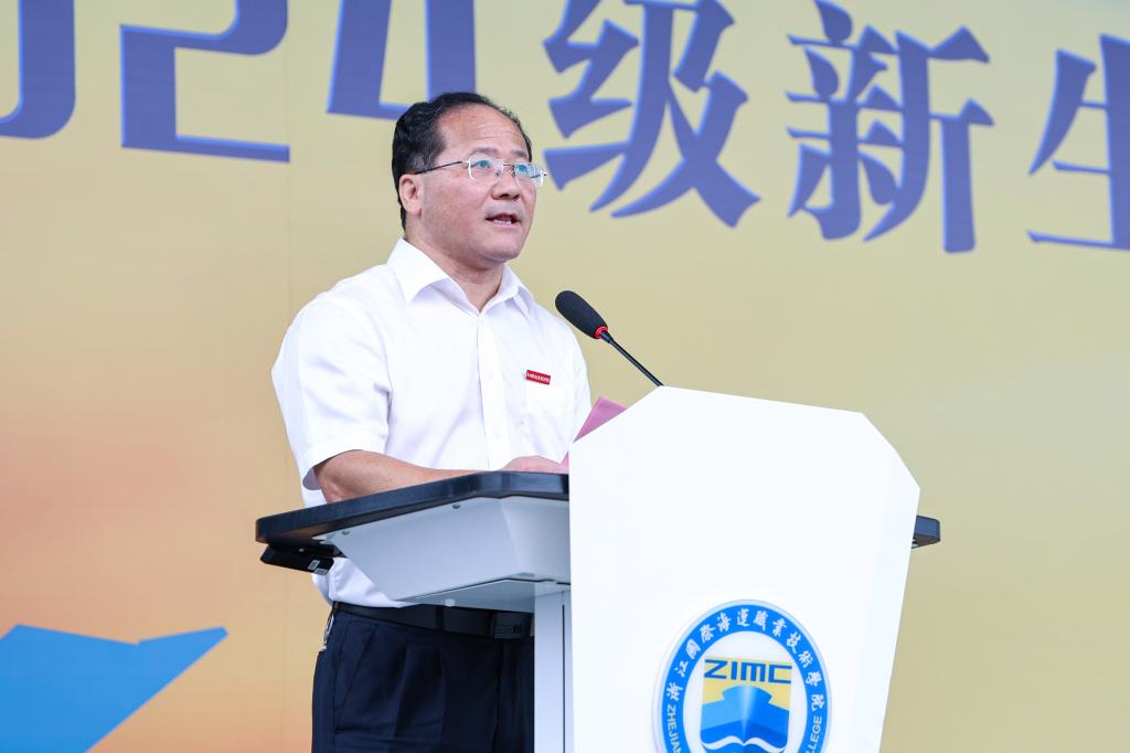 孔志光副书记向承训教官们赠送锦旗,向承训单位定海区人武部对我校国防教育工作给予的大力支持表示感谢。他对2024级全体参训同学顺利完成军训任务表示祝贺,并对新生军训取得的成效表示肯定。他指出,军训是一门特别的课程,是新生进入大学的第一课。通过军训,同学们领略了军人的风采,强化了国防意识,增强了爱国热情;增强了体质,磨练了意志,培养了团结协作精神,形成了良好的组织纪律观念;增强了集体凝聚力,形成了积极向上的良好班风,实现了军训是学校人才培养有机组成部分的教学目标。他勉励同学们要将军训的收获化为成长的动力,把养成的良好作风、严明纪律和意志品质带到今后的学习生活中,以昂扬姿态践行“请党放心,强国有我”的使命担当,努力成长为有理想、敢担当、能吃苦、肯奋斗的新时代好青年。