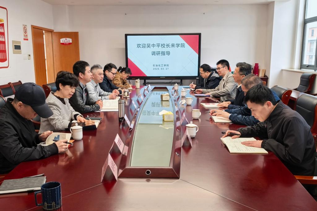 327日,校党委副书记、校长吴中平,党委委员、副校长曹志斌带领办公室、后勤产业处等相关部门人员到石油化工学院调研指导工作,学院党政班子参加调研。