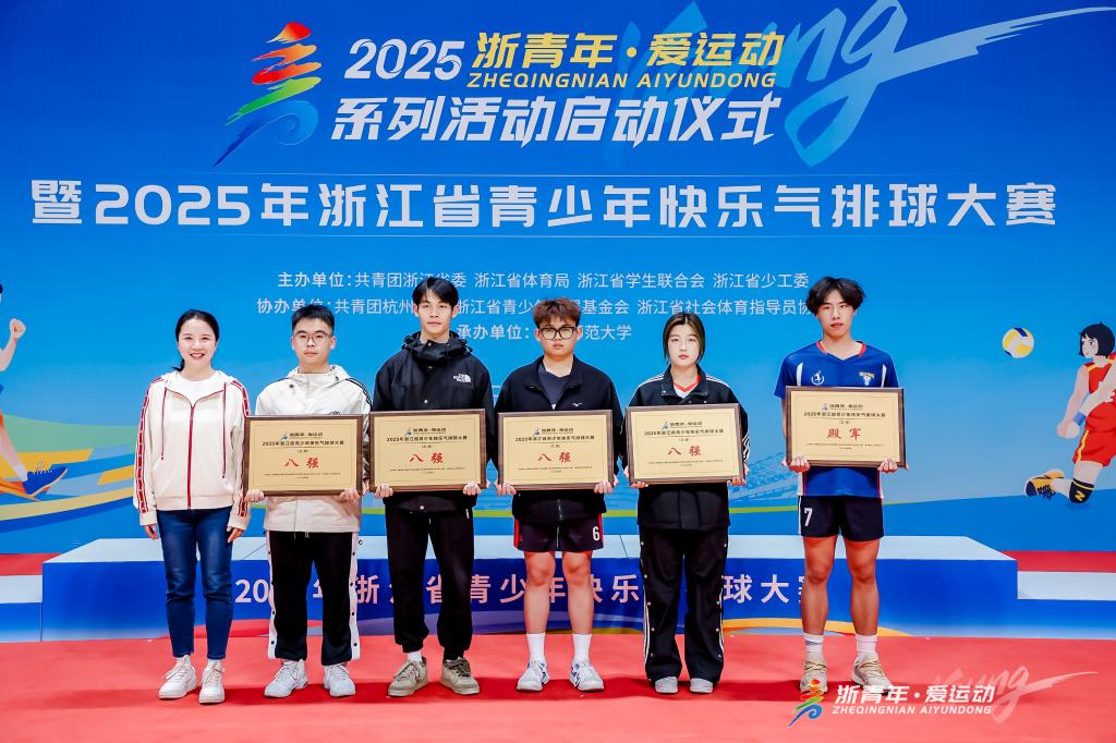 运动点燃激情,体育赋能青春,4月13日,由共青团浙江省委、浙江省学生联合会等部门联合主办的2025年度“浙青年·爱运动”浙江省青少年快乐气排球大赛在杭州师范大学体育馆落下帷幕,我校气排球队在众多参赛队伍中脱颖而出,取得了浙江省前八强的优异成绩。