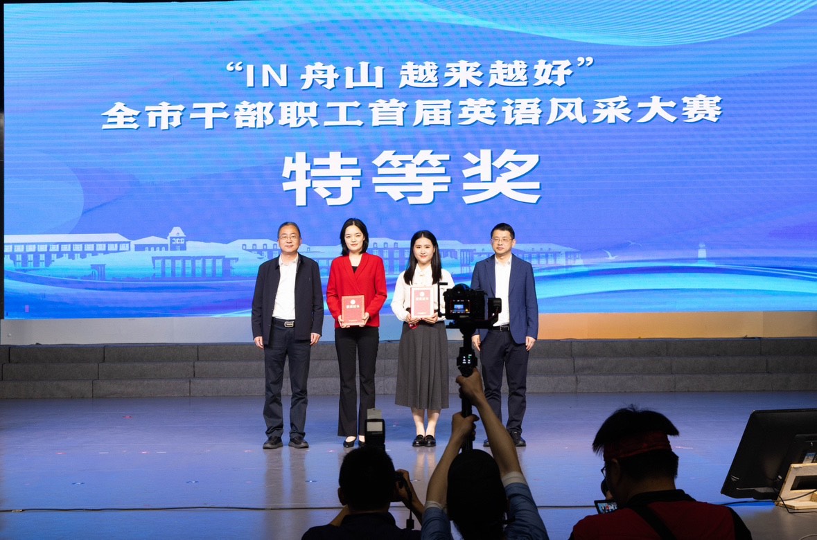 4月29日,“IN舟山,越来越好”全市干部职工首届英语风采大赛在浙江海洋大学举行。来自全市机关事业单位及绿色石化、船舶海工、现代航空、海事服务等行业领域的21名选手展开激烈角逐,最终我校国际教育学院教师邵瑶以总分第一荣获大赛特等奖。