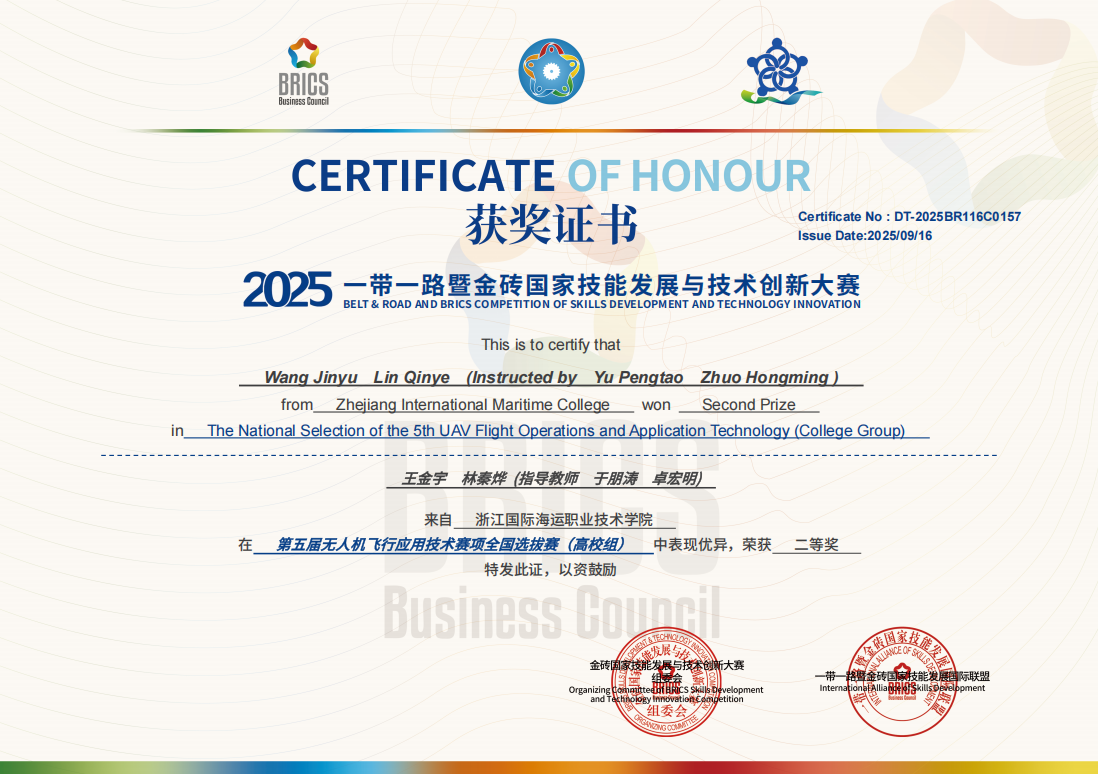 我校师生在2025一带一路暨金砖国家技能发展与技术创新大赛无人机飞行应用技术赛项中斩获佳绩
