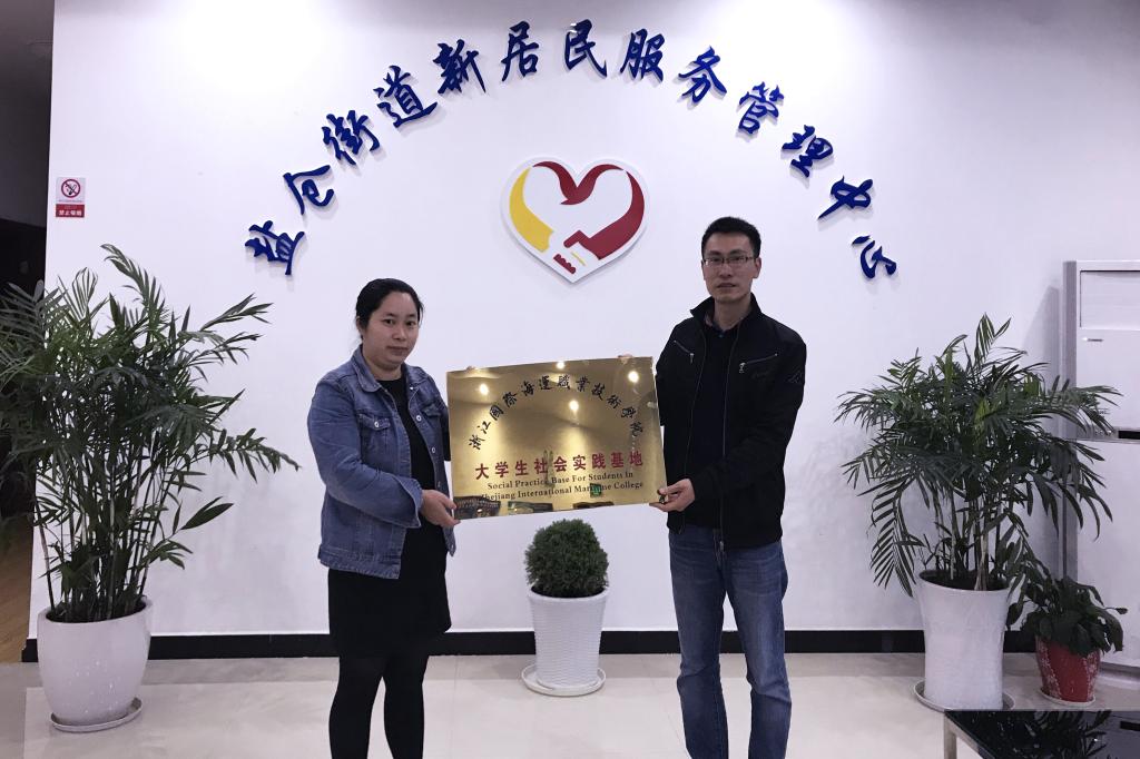 11月22日下午,国际教育学院“启航”志愿服务队来到盐仓街道新居民服务管理中心,举行大学生社会实践基地签约授牌仪式。