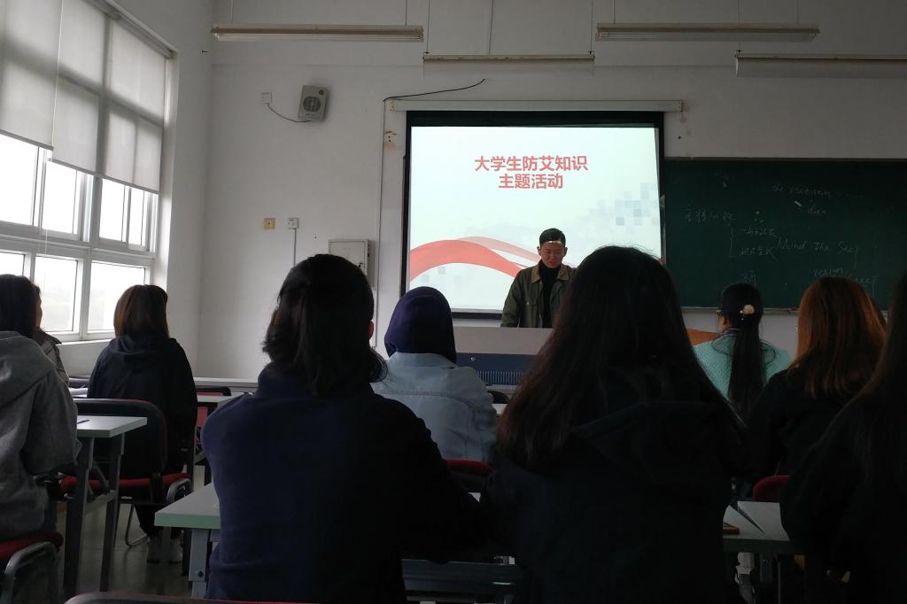 图为国际教育学院、海洋旅游学院开展防艾知识主题班会活动