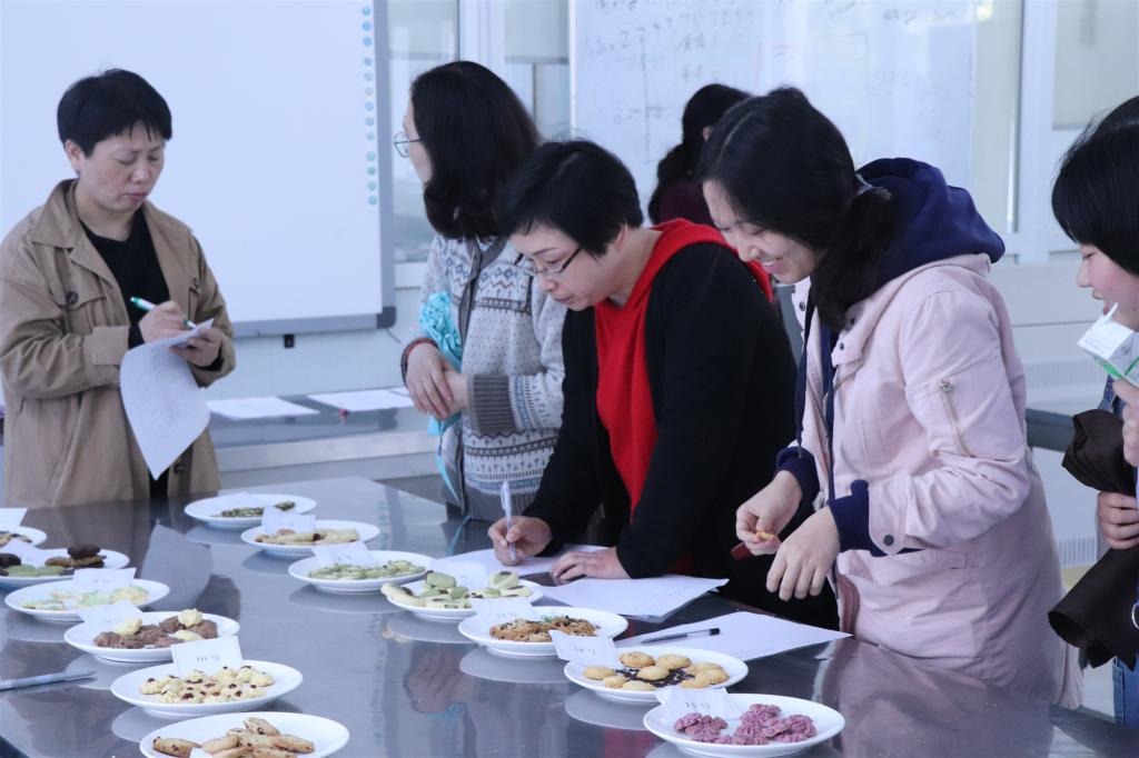 在4102实训室进行的西点制作比赛现场,选手们拿起各自需要的器具和材料,大家有条不紊,按照步骤操作,从称量到打发,从揉捏到装盘,选手们不敢在任何一个步骤出错。随着时间一分一秒的消逝,选手们也从烤箱中拿出自己满意的作品,开始精致地摆盘。经过评委老师严谨的评定,最终,由2018及国际邮轮乘务管理7班的俞翼辰和李禹柯同学获得一等奖。