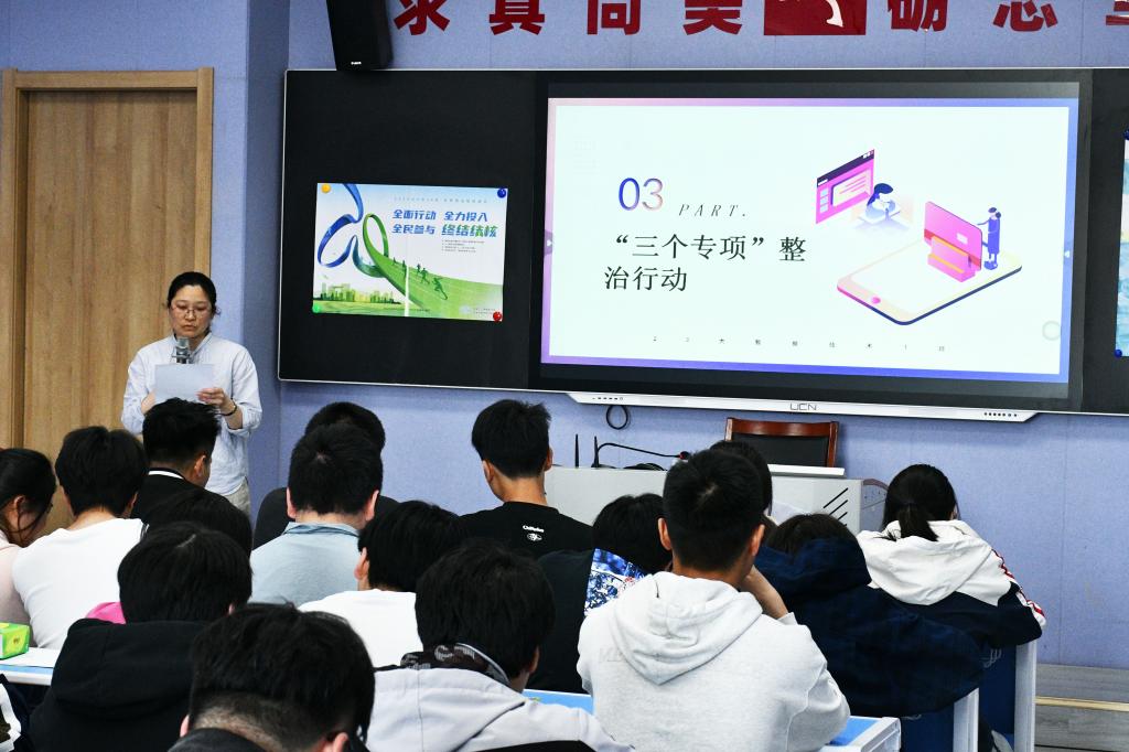班主任吴娜炯老师结合班级情况,强调了学校学生管理“三个专项”整治行动的具体要求,引导学生在日常生活中养成良好的行为习惯。