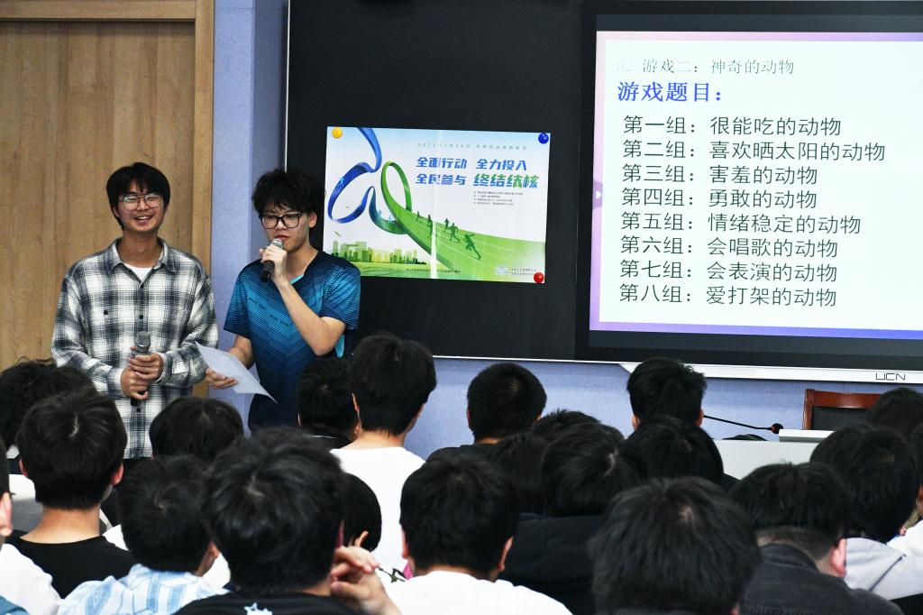 本次班会由班级学生干部主持,内容丰富,形式多样。班会通过视频导入,引导学生认识春季常见心理问题,并掌握情绪调节技巧。在心理小游戏环节,“情绪猜猜猜”“神奇的动物”等团队游戏让学生在轻松氛围中提升了自我认知与情绪表达能力。
