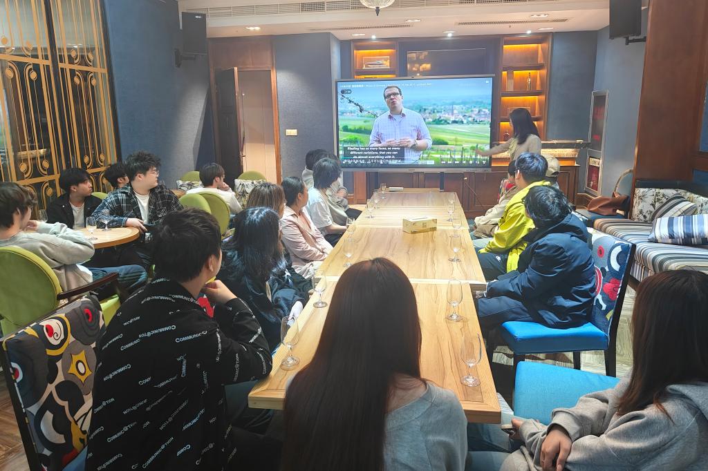 4月23日,正值第28个“世界读书日”,海上侍酒师俱乐部社团在学校海邮驿站举办了一场别开生面的“书香与酒香共融”主题品鉴会。活动由社团指导老师孔洁主持,20余名社员齐聚一堂,以专业讲解、视频学习与实践品鉴相结合的方式,深入探索雷司令葡萄酒的魅力。