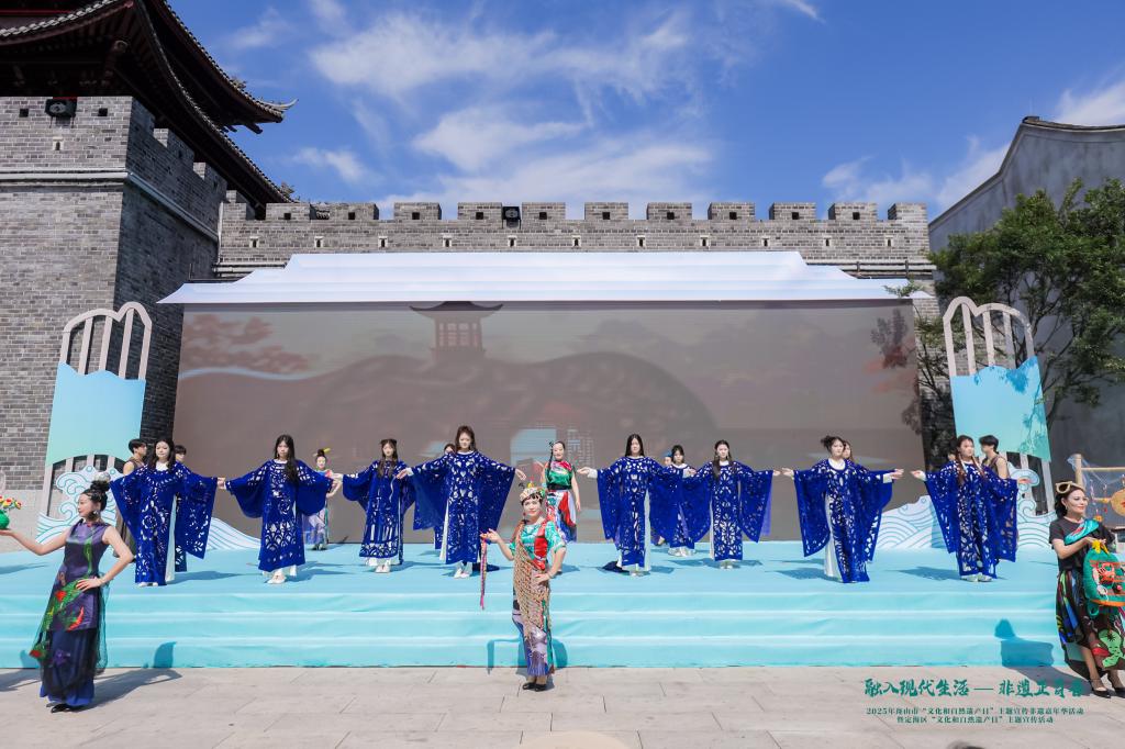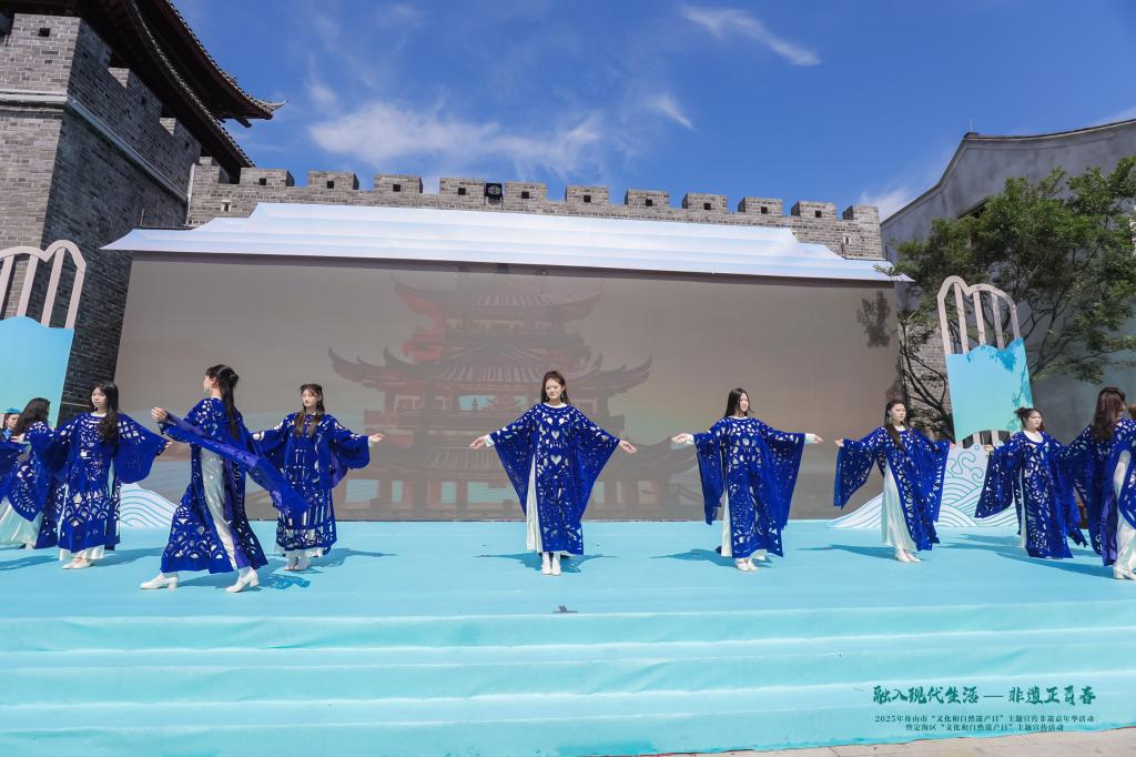 6月14日,舟山市“文化和自然遗产日”主题宣传非遗嘉年华活动在定海古城盛大举行。海洋旅游学院礼仪志愿者服务团队的12名女生与4名男生,身着非遗服饰秀出舟山海韵,成为活动现场一道亮丽的风景线。