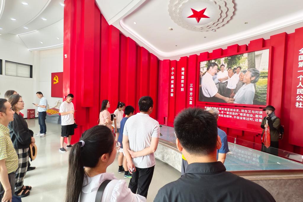 全体党员先后参观了马金星《军港之夜》词作地、人民公社旧址和58工人印记馆,感受老一辈蚂蚁岛人“艰苦创业、敢啃硬骨头、敢为人先”的奋斗历程。在创业礼堂,全体党员集中观看了蚂蚁岛发展纪录片。纪录片结束后,一位当地老党员走上讲台,用朴实的语言讲述了自己亲历的海岛建设故事,从简陋的生产条件到逐步改善的生活,叙述让在场党员深受触动,仿佛置身于那段激情燃烧的岁月。