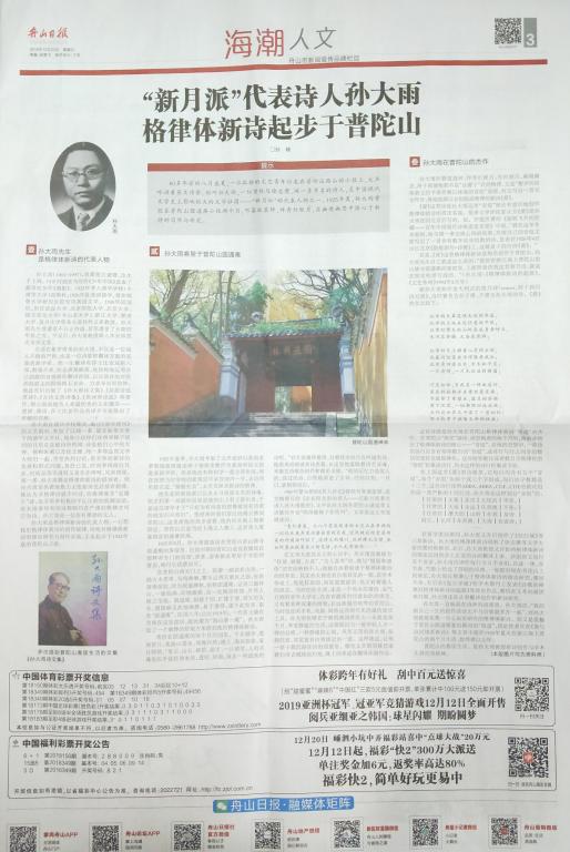 (2018年12月23日《舟山日报》第三版 海潮人文)