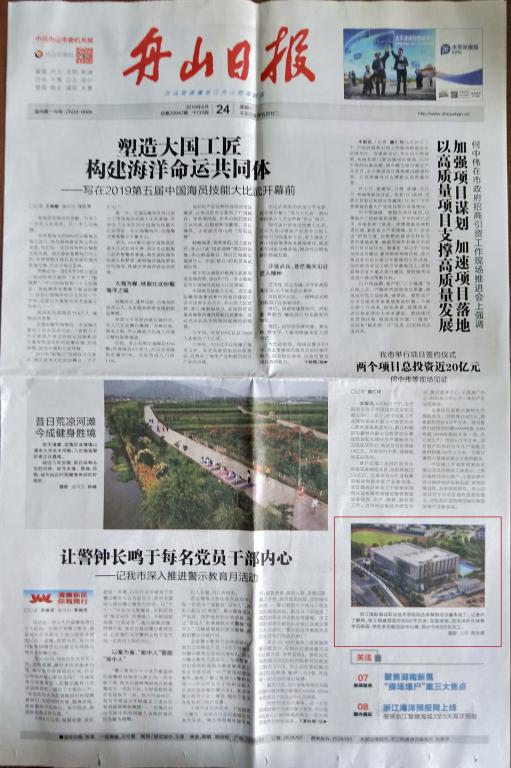 (2019年6月24日《舟山日报》头版图片新闻)