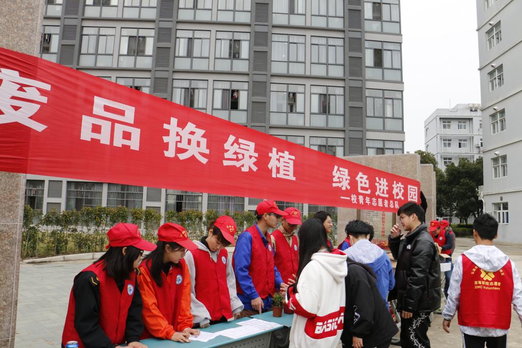 3月27日上午,我校青年志愿者总队在校商贸区组织开展了为“废品换绿植,绿色进校园”环保公益活动,用废旧物品“以物换物”的方式换取绿色植物,倡导绿色环保生活。
