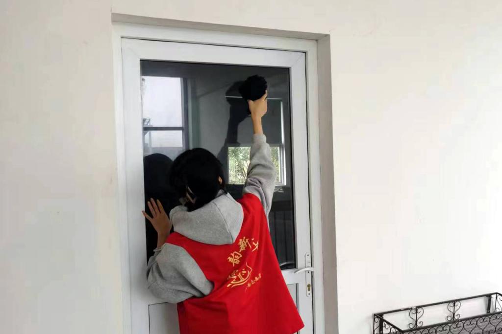 同学们组织有序,分工明确,干劲十足,拿起抹布、扫帚、拖把、刷子等工具,认真打扫地面,清理垃圾,擦洗桌椅、门窗、玻璃、墙壁等区域,不留死角。