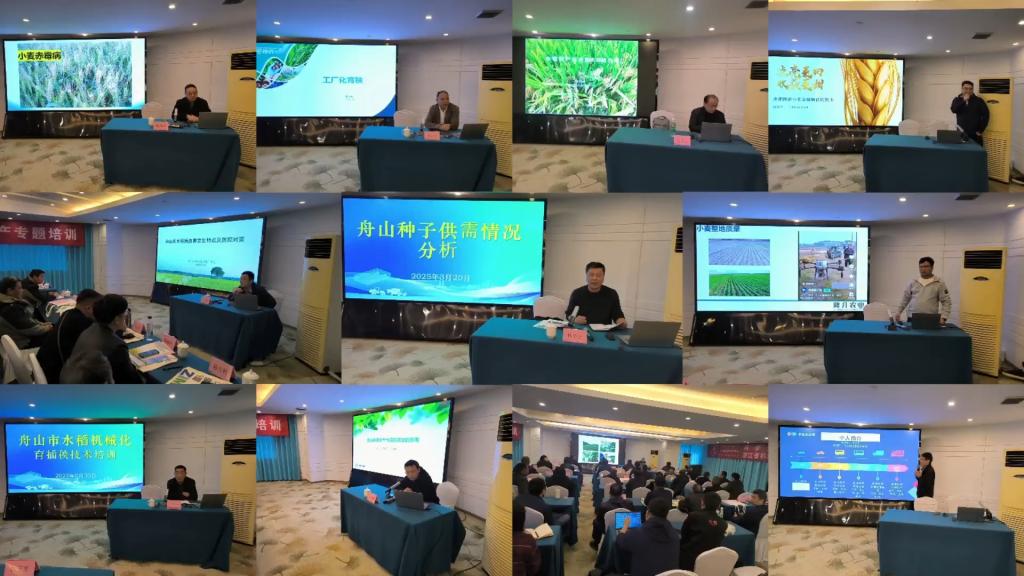 此次培训采用“理论+实地参观”方式开展,旨在提升春季粮油作物综合生产能力,促进农作物新品种、新技术推广,建设高素质基层人才队伍与高素质农民队伍。培训邀请了宁波市海曙区农业服务管理站、宁波市农业科学研究院、舟山市农技推广中心、万里神农有限公司、舟山市气象局司、舟山大地种业公司、浙江省农业技术推广中心等相关专家老师,围绕春花作物病虫害发生趋势及防控、舟山市水稻病虫发生特点及防控对策、水稻育苗机插秧技术、舟山未来气象趋势分析及对农业的影响、舟山种子供需情况分析、水稻高产攻关技术和优质稻生产技术、实用农药介绍等内容进行专题授课。
